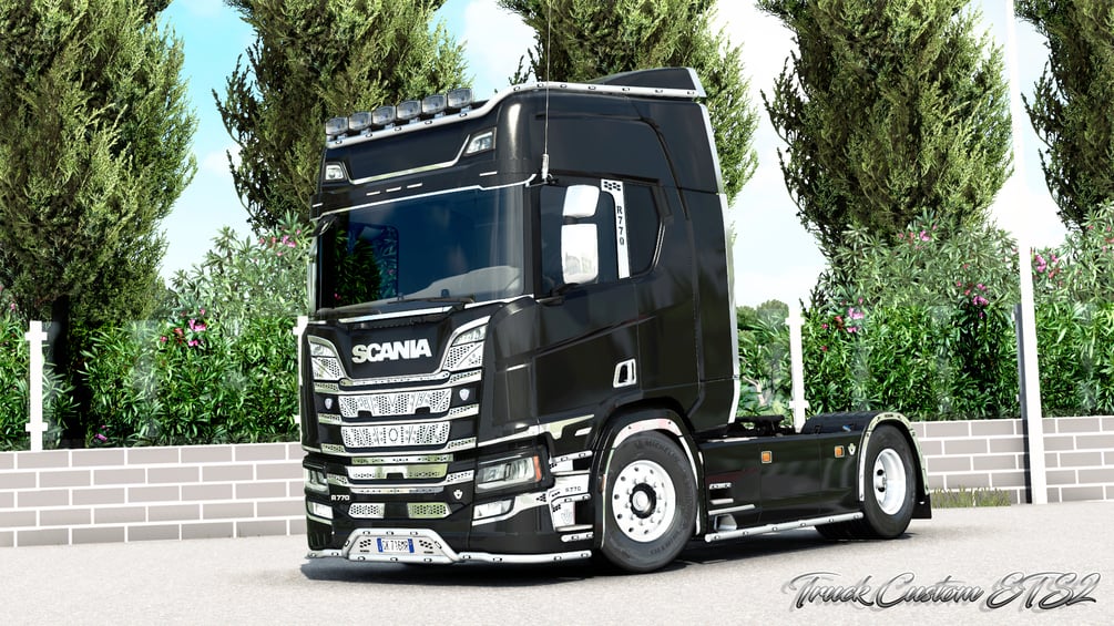 The mod contains accessories for the Italian-style customization of the scania R Next Gen